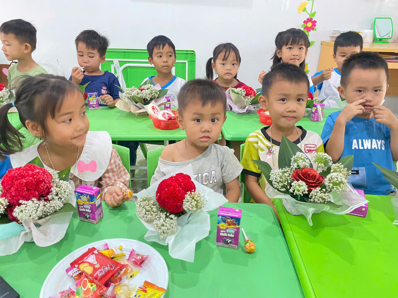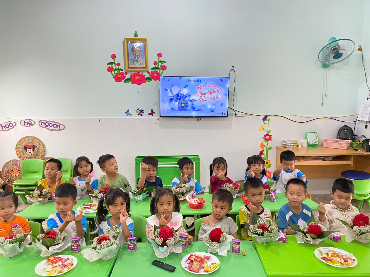 Gửi ngàn đóa hoa yêu thương: Lớp Lá 7 (Điểm trường Thôn 18) tri ân Ngày Quốc tế Phụ nữ 8/3