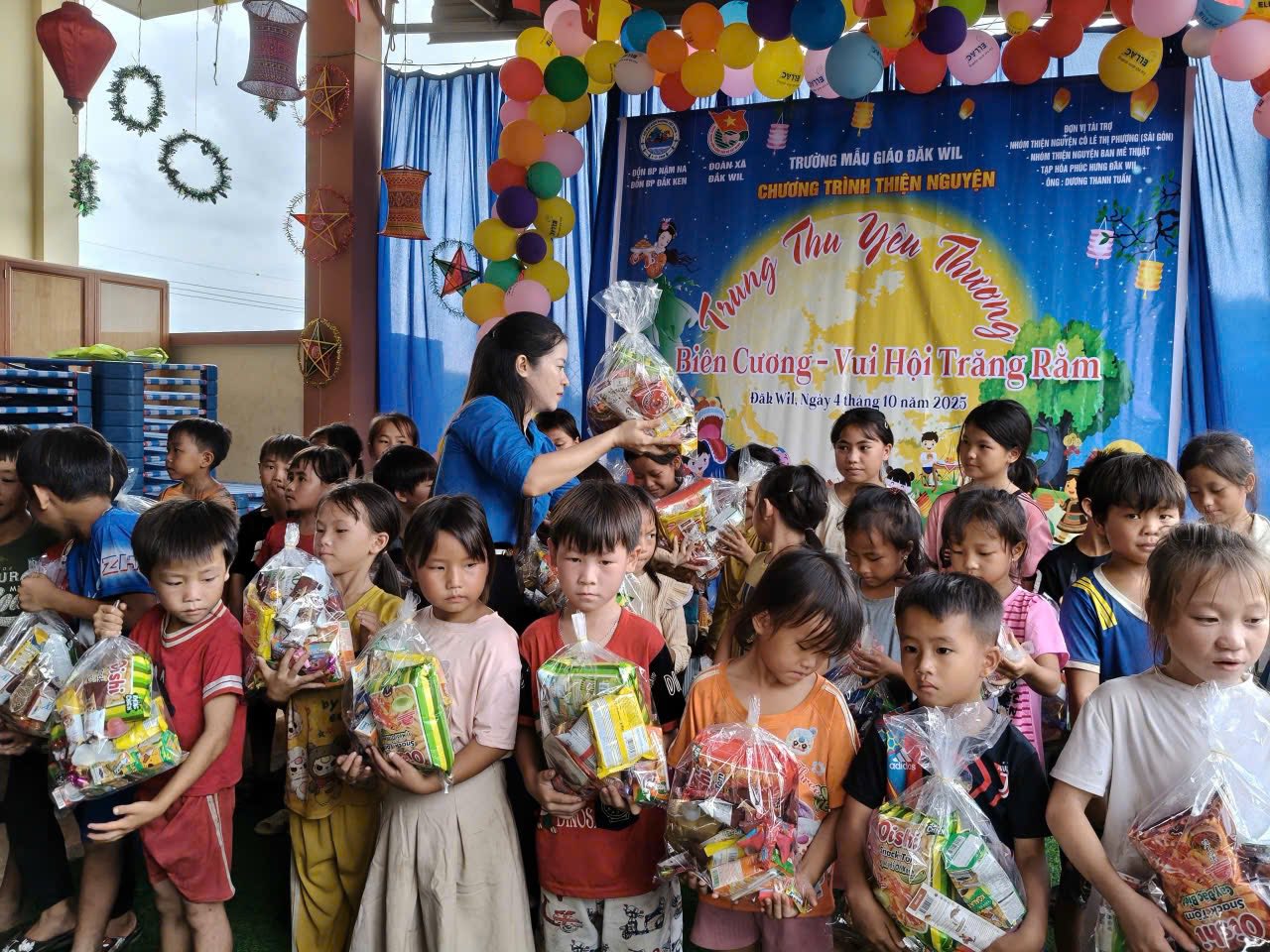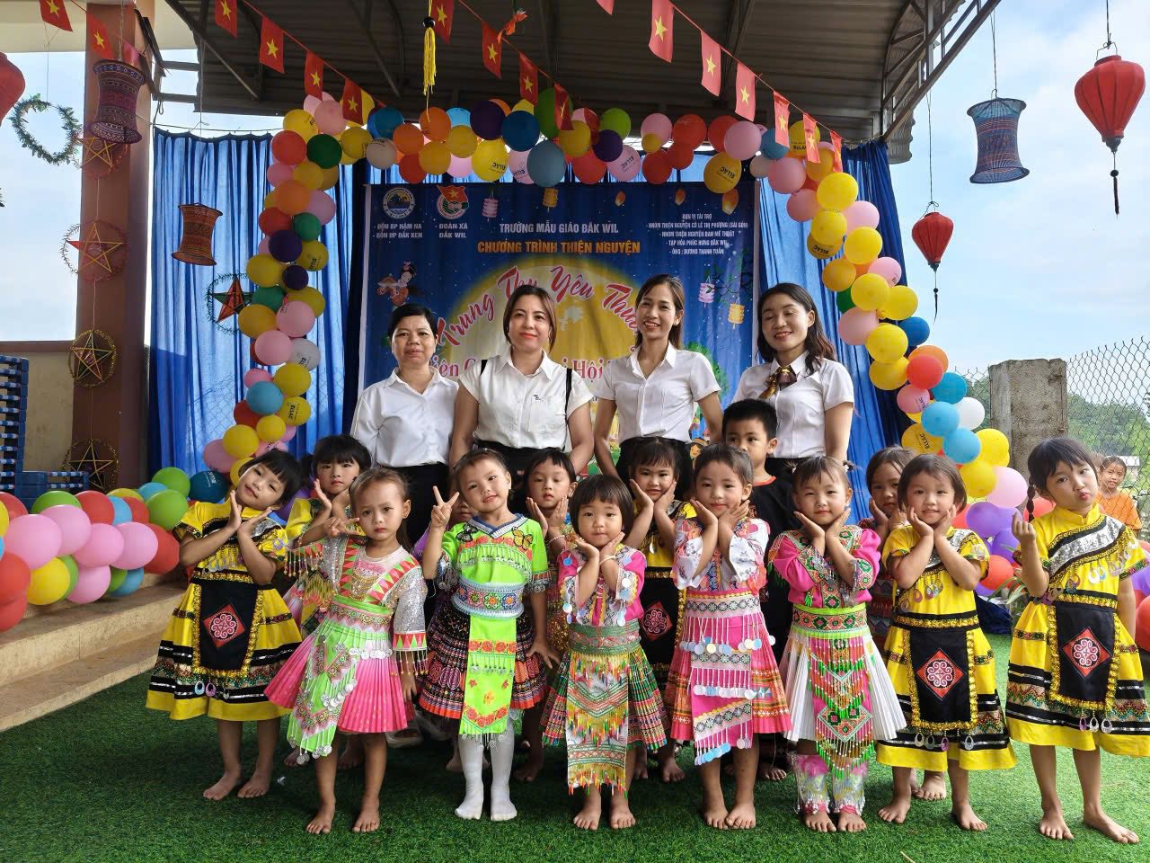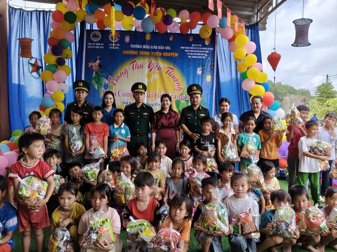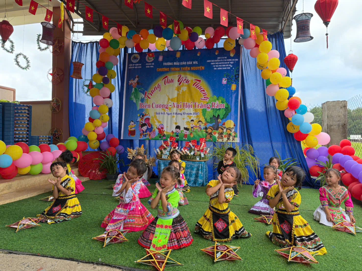Hòa chung không khí tưng bừng chào đón Lễ hội Trăng Rằm, lớp Lá 5 và lớp Chồi 3 tại điểm trường Thôn 5, Trường mẫu giáo Đắk Wil đã tổ chức thành công chương trình “Trung thu Yêu Thương – Biên Cương Vui Hội Trăng Rằm”. Chương trình không chỉ mang đến một mùa Trung thu ấm áp, đầy ắp tiếng cười và tình yêu thương cho các em nhỏ vùng biên giới mà còn là minh chứng sống động cho sức mạnh của sự sẻ chia và lòng nhân ái từ cộng đồng.