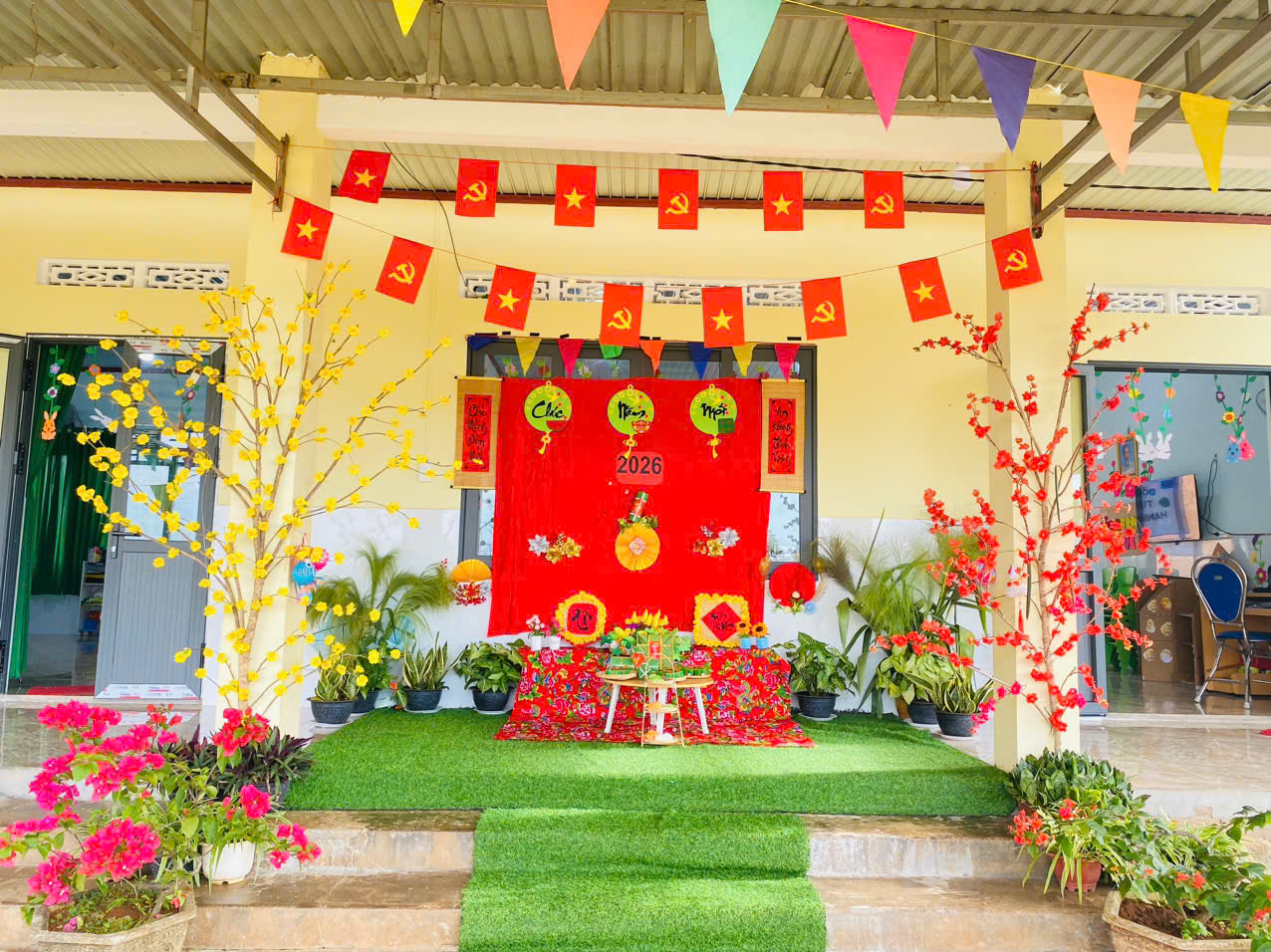 Tết Nguyên Đán Giáp Thìn 2026 đang cận kề, mang theo không khí rộn ràng, tươi vui khắp muôn nơi. Tại Trường mẫu giáo Đắk Wil, không khí chuẩn bị đón Tết đang diễn ra vô cùng sôi nổi. Từ các lớp học đến khuôn viên trường, tất cả đang dần khoác lên mình tấm áo mới rực rỡ, sẵn sàng chào đón một mùa xuân an lành và ấm áp.